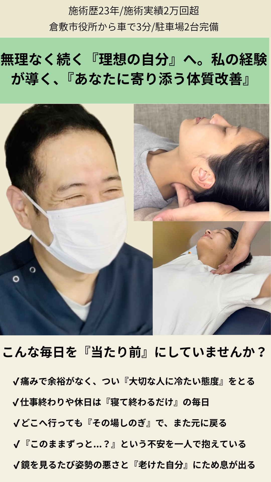 23年の施術経験から、今のあなたに「必要なこと」と「不必要なこと」を正確にお伝えします。